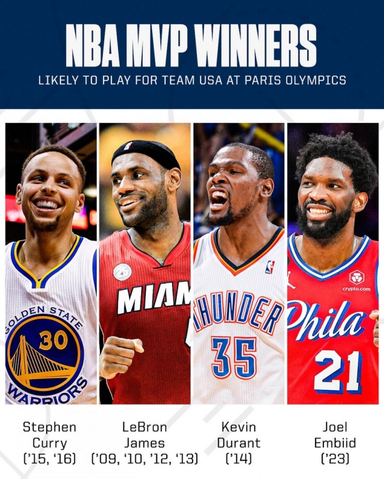 大帝加盟!美国队潜在首发有4名MVP:库里+詹姆斯+杜兰特+恩比德