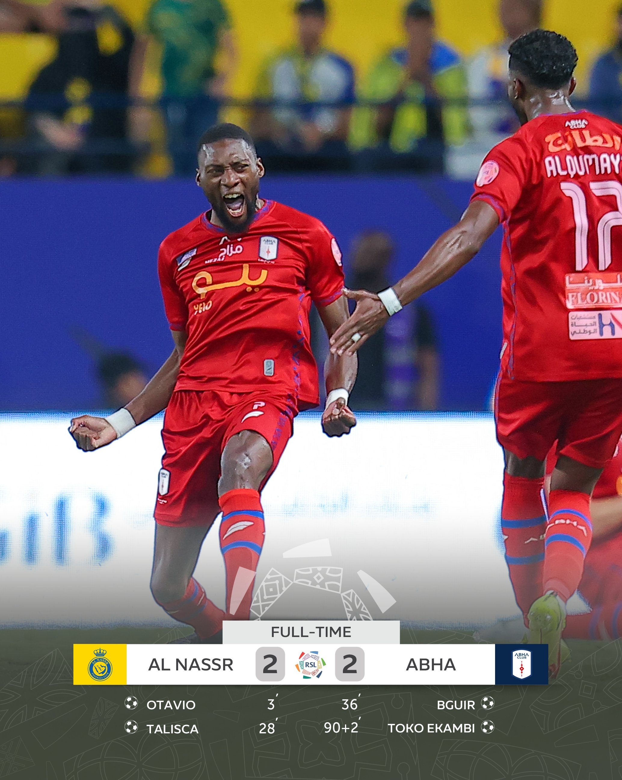 沙特联-利雅得胜利2-2遭艾卜哈绝平 各赛事10连胜遭终结