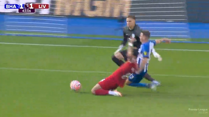 jrs直播吧10月8日讯 利物浦与布莱顿的比赛目前进入了中场休息,红军暂时2-1领先。上半场最后时刻,格罗斯犯规送给了利物浦一粒点球。不过利物浦跟队记者林奇认为,格罗斯应该被罚下。