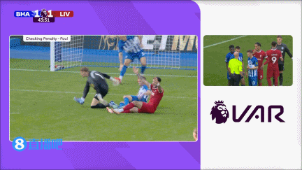 第43分钟,维尔布鲁根传球出现失误,索博斯洛伊在禁区内被拉倒,主裁判吹罚点球。上半场补时第1分钟,萨拉赫主罚点球命中,利物浦2-1反超布莱顿。↓