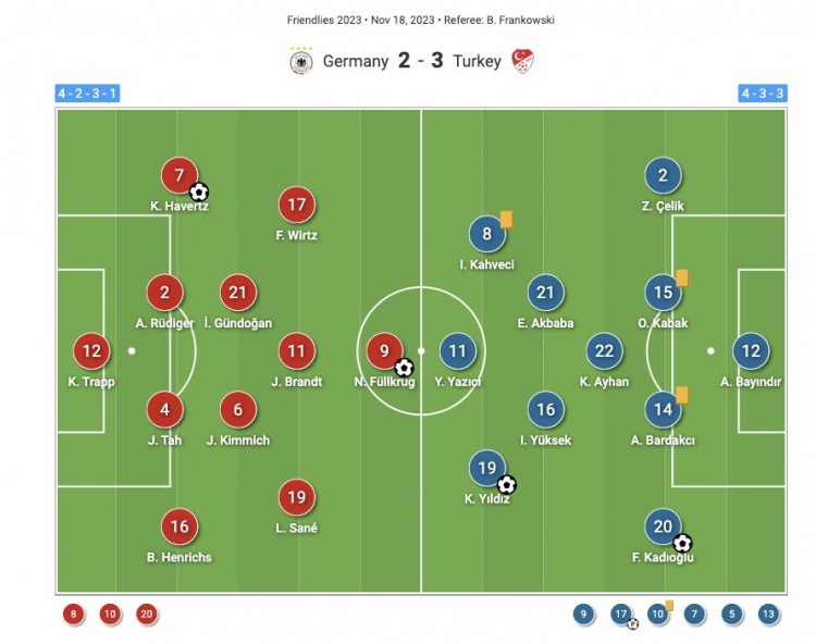 德国对阵土耳其的友谊赛,双方首发阵容及阵型
