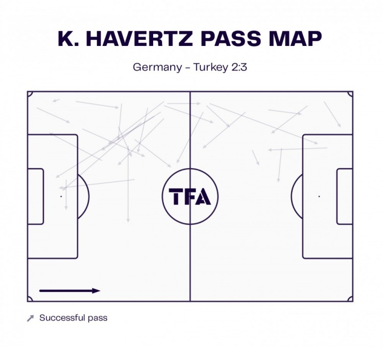 不过抛开比赛结果不谈,这场比赛还有一个值得我们关注的话题,那就是纳格尔斯曼对哈弗茨的运用:在这场对阵土耳其的比赛中,纳帅将哈弗茨安排到了左边卫的位置上。