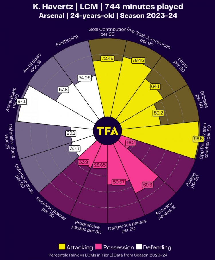 但即便如此,哈弗茨也有自己的优点:他擅长寻找进攻空间。