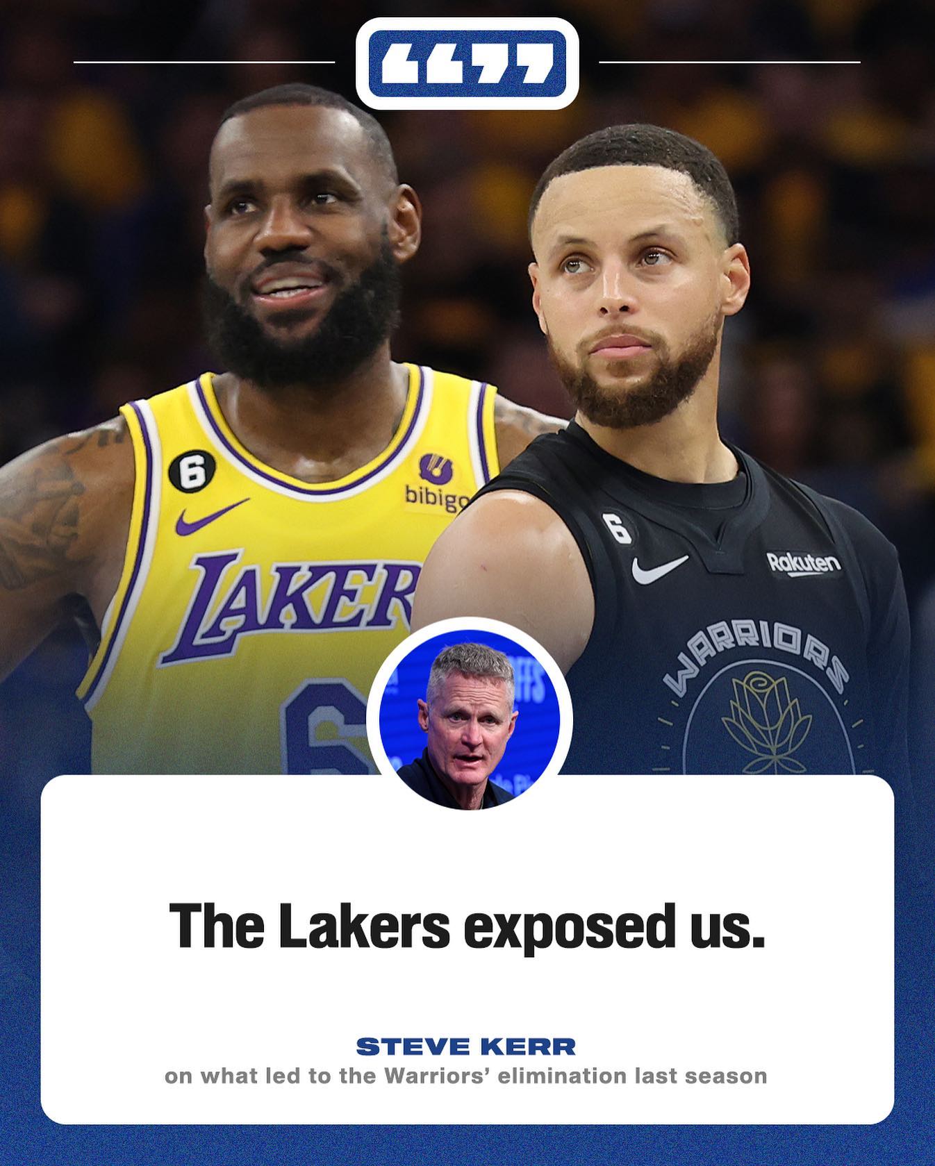 10月7日讯 勇士主教练科尔接受采访,被问到上赛季和湖人的季后赛对决。