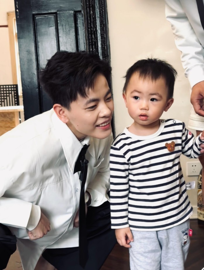 杨舒予晒出自己与小朋友的合照,并打趣道:“现在的男人都这么高冷。”