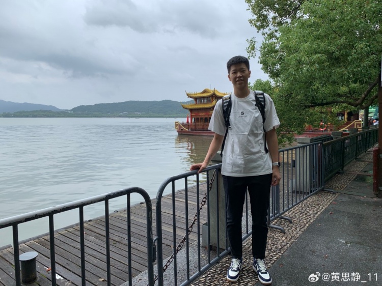 黄思静今日晒出自己在西湖游玩的照片,并且配文:“感谢杭州,杭州再见。(附上游客照,证明来了西湖) ”