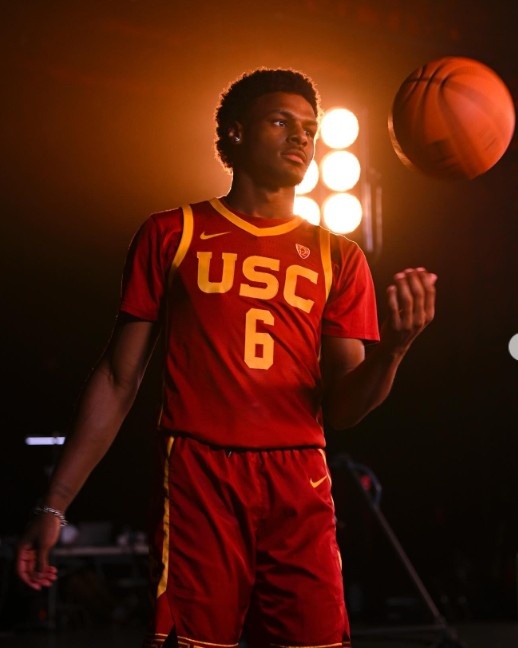 其中,布朗尼-詹姆斯身穿6号球衣,并且他球衣背后的名字是小詹姆斯(James JR),他的全名本为LeBron Raymone James Jr,而我们通常见到的名字都是Bronny James。