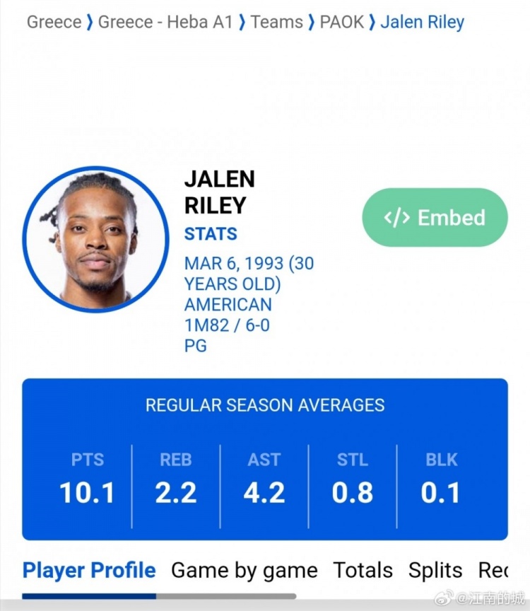 jrs直播10月10日讯 据媒体人“江南的城”的消息,美籍球员杰伦-莱利正在与CBA球队接触。