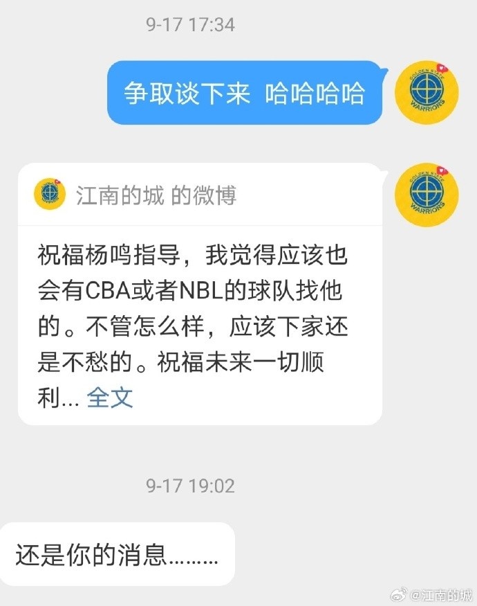 媒体人江南的城透露:“其实杨鸣指导去NBL球队任职的消息已经有一段时间了,辽宁益胜也一直在在积极争取。那么最终还是达成合作,祝福杨鸣新的岗位一切顺利。”