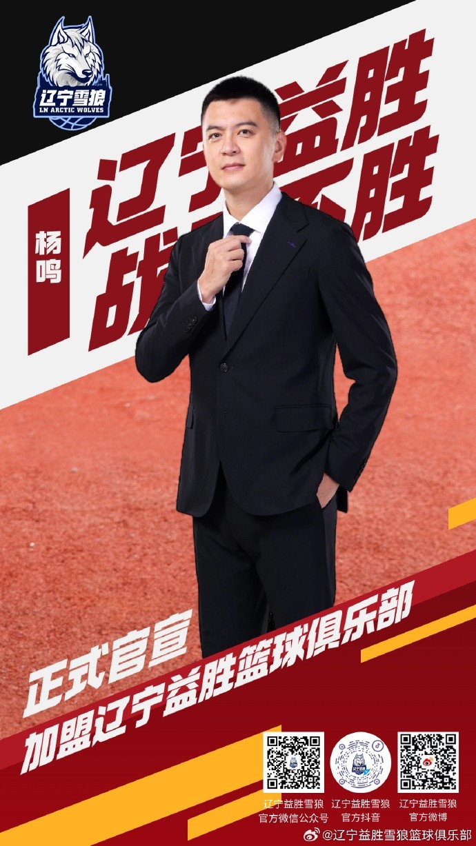 jrs直播10月10日讯 辽宁益胜篮球俱乐部今天官方宣布,杨鸣正式加盟球队。