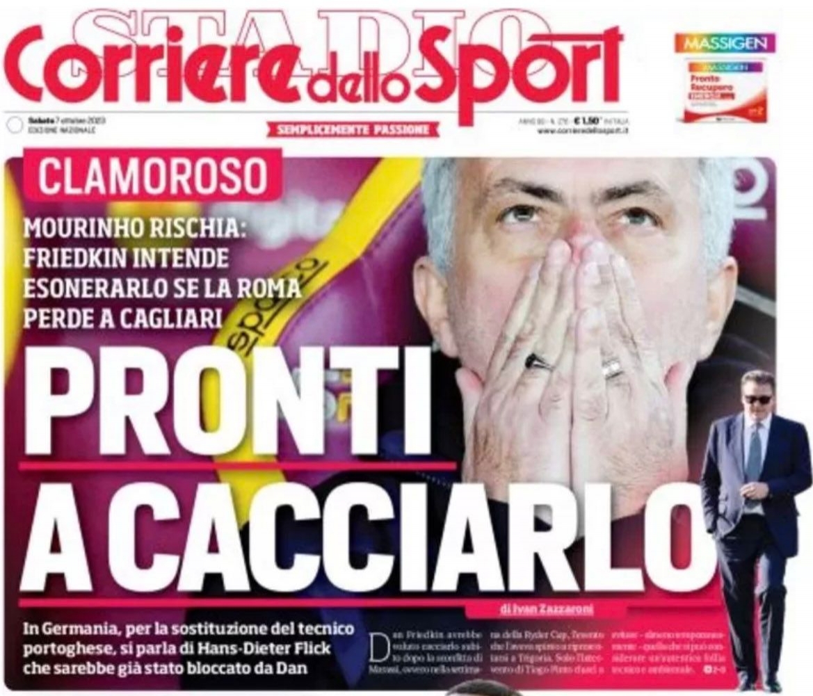罗体表示,如果接下来输给卡利亚里,俱乐部将解雇穆里尼奥,并邀请弗里克执教。
