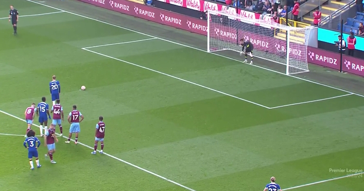比赛第49分钟,斯特林突破被放倒,裁判判罚点球,帕尔默主罚命中,切尔西2-1反超伯恩利。