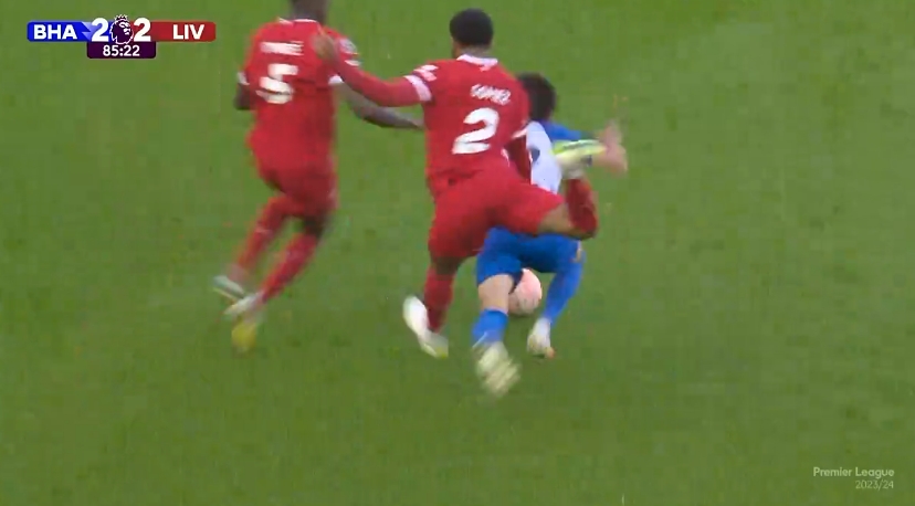 三笘薰连停带过过掉戈麦斯,后者补防放倒三笘薰染黄