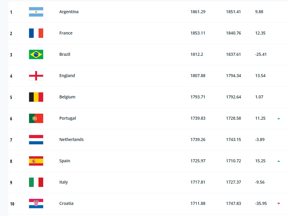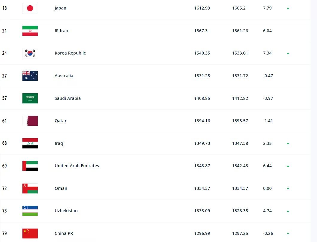 9月份的排名中,国足排在世界第80、亚洲第11。10月份,国足在热身赛中2-0战胜越南,1-2不敌乌兹别克斯坦。